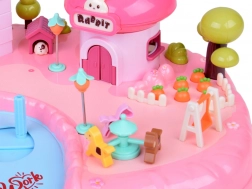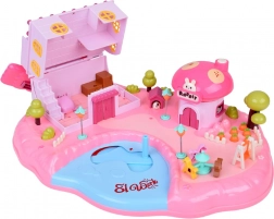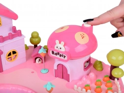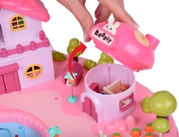 Das Häuschen bietet ein mehrstöckiges Interieur mit Szenen für den Alltag: ein gemütliches Schlafzimmer mit Bett, ein zu öffnender Schrank, ein Badezimmer mit Badewanne und Waschbecken, eine kleine Küche mit Kühlschrank sowie ein Schminktisch. Licht- und Soundeffekte, die per Tasten ausgelöst werden, verstärken die Spielatmosphäre, und die hinterleuchtete Aufschrift RABBIT reagiert im Takt der Melodie.