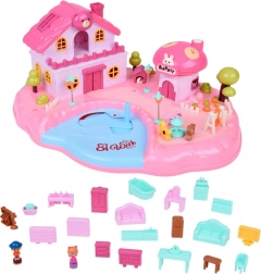 Entdecke das zauberhafte Haus im Garten: Ein offenes Häuschen mit einem Laden in Fliegenpilzform, einem Teich mit Regler und einem Spielplatz lädt Kinder zu endlosem Geschichtenerzählen ein. Die verborgene magnetische Induktion setzt Figuren und Details der Szene in Bewegung – einfach den Regler am Teich verschieben und sie in den Garten, auf den Spielplatz oder in den Laden starten lassen.