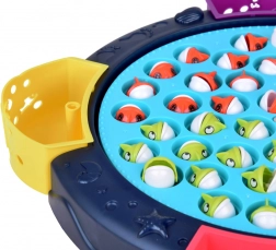Ein unterhaltsames, interaktives Spiel für Kinder und Eltern, bei dem ihr Fische aus einem rotierenden Teich mit Angelruten fangt. Für bis zu 4 Spieler geeignet, enthält 45 Fische in leuchtenden Farben und spielt Blubbergeräusche und eine fröhliche Melodie ab. Fördert hervorragend die Feinmotorik und die Hand-Auge-Koordination. Geeignet ab 3 Jahren, Betrieb mit 3× AA.
