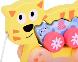 Ziehspielzeug mit Schnur, 2-in-1 (große Katze + kleines Kätzchen)