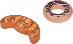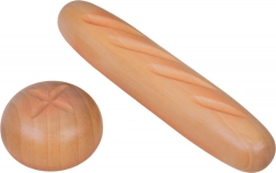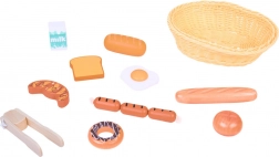 Baguette, Brötchen, Toast, Croissant, Donuts, Würstchen, Ei und Milch – detailgetreue Formen und Farben laden zum Küchen- oder Kaufladenspiel ein.