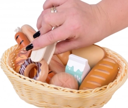 Holzkörbchen mit Backwaren und Frühstückslebensmitteln, 11-teiliges Set