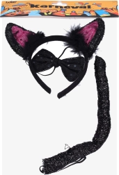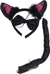 Haarreif mit Katzenohren, Fliege, Schwanz