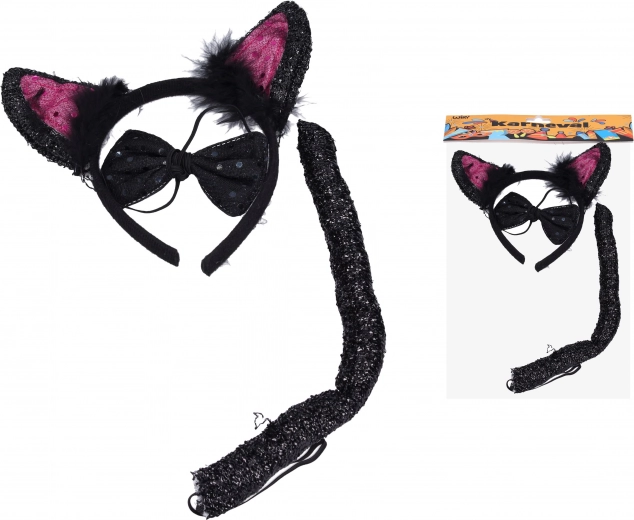 Das Karneval-Set „Schwarze Katze“ ist die ideale Wahl für Kinder, die ihre Träume wahr werden lassen und zu einer eleganten Katzenfigur werden möchten. Das Set enthält einen Haarreif mit Katzenohren, einen Fliege und einen Schwanz, was eine vollständige Verkleidung ermöglicht.