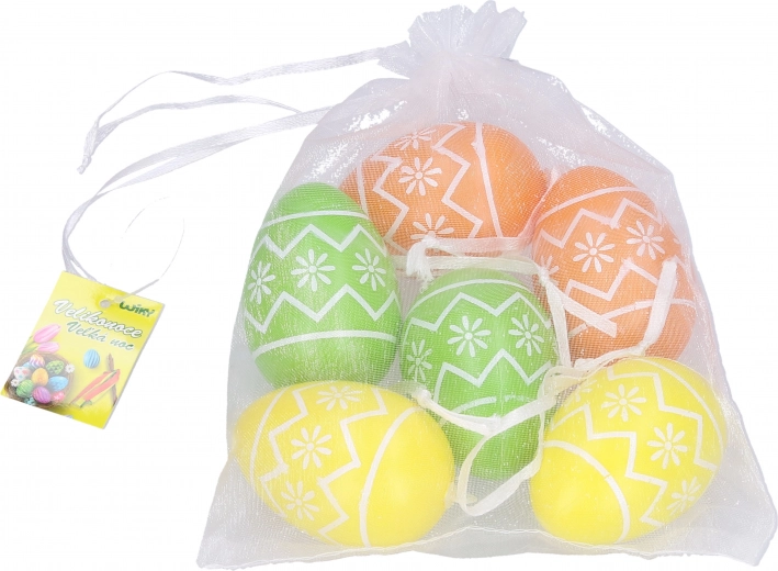 Die Packung enthält sechs Eier, die in einem eleganten Organzabeutel verpackt sind. Dies erleichtert nicht nur die Aufbewahrung und den Transport, sondern sorgt auch für eine stilvolle Präsentation. Die Eier bestehen aus robustem Kunststoff, was eine lange Lebensdauer und die Möglichkeit der wiederholten Verwendung gewährleistet. Sie sind leicht und einfach zu handhaben, was auch Kinder ab drei Jahren zu schätzen wissen.