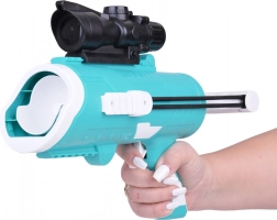 Bunte Pistole für das Weitschießen von Schneebällen. Punkte in jeder Schneeballschlacht!
