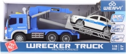 Enthält ein kleines Auto von 16 cm, das dank des Hakens am Abschleppwagen einfach transportiert werden kann.