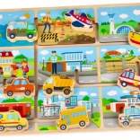Dieses farbenfrohe Holzpuzzle bringt Kindern die Freude am Entdecken verschiedener Verkehrsmittel. Enthalten sind Schulbus, Polizeiauto, Krankenwagen und weitere Fahrzeuge, die einfach in die entsprechenden Öffnungen eingesetzt werden können.