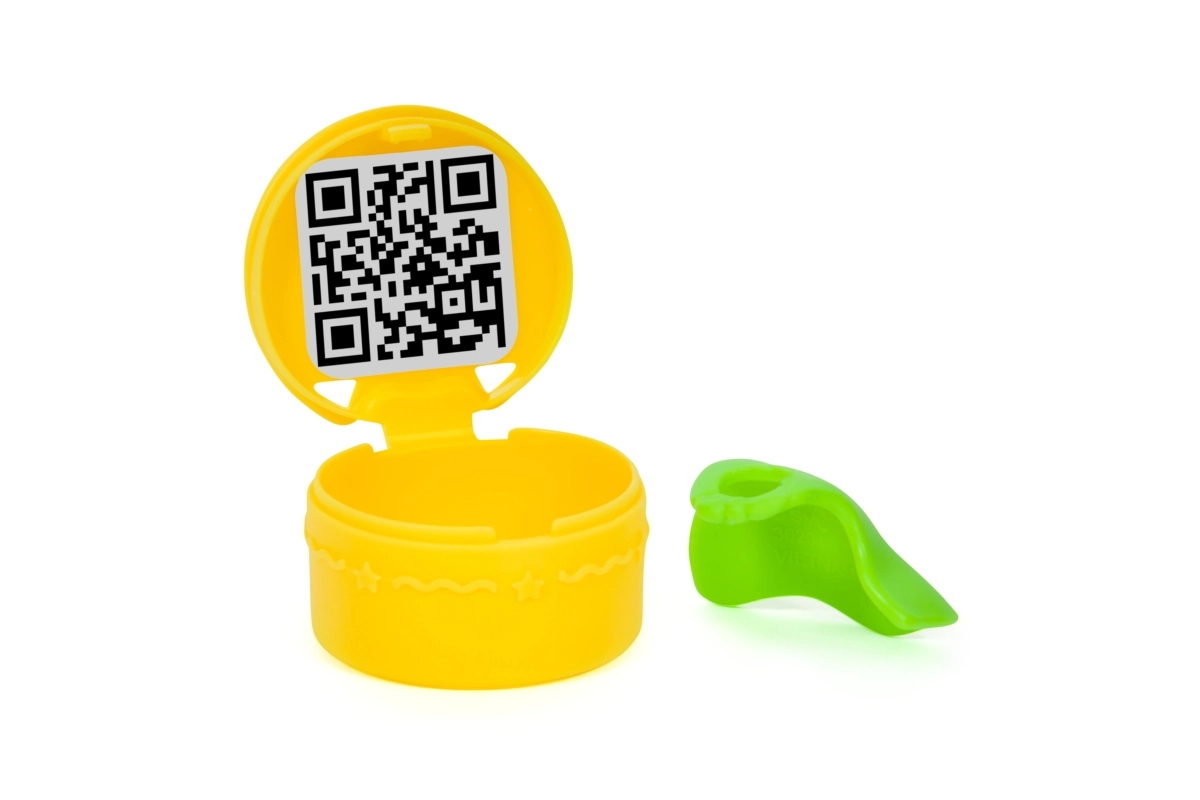 Öffne die gelbe Kapsel mit Schnappdeckel und entdecke den Umhang. Scanne den QR-Code im Deckel und erhalte eine spezielle Belohnung in der App.