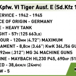 Dieses präzise ausgearbeitete Modell basiert auf dem berühmten Panzer Pz.Kpfw. VI Tiger Ausf. E mit der taktischen Nummer 114, bekannt aus dem Musée des Blindés in Saumur. Dank der zahlreichen Details, der authentischen Tarnung und der funktionsfähigen Elemente macht sowohl der Bau als auch das Spielen Spaß. Enthalten ist ein herausnehmbarer Bausteinmotor Maybach HL 210, ein drehbarer Turm und eine höhenverstellbare Kanone, zu öffnende Luken sowie realistische Kettentraktion.