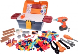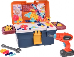 Dieses umfangreiche Set für kleine Meister verwandelt jedes Zimmer in eine kreative Werkstatt. Der verschließbare Koffer dient als praktische Aufbewahrung und Arbeitsfläche – die perforierte Platte ermöglicht das feste Befestigen von Schrauben, Muttern und Bauteilen, mit denen Kinder Autos, Hubschrauber, Tiere und bewegliche Konstruktionen mit Zahnrädern leicht zusammensetzen.