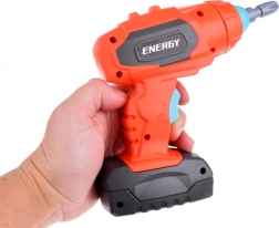 Leichter batteriebetriebener Schraubendreher mit Aufsätzen imitiert echtes Werkzeug und motiviert Kinder zum selbstständigen Schrauben.