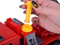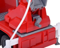 Eine stabile Kunststoffkonstruktion in kräftigen Farben, Gummireifen für besseren Grip sowie seitliche Fächer und ausziehbare Stützen sorgen für noch mehr Authentizität. Der 360° drehbare Ausleger und das praktische Schlauchfach fördern Feinmotorik, Fantasie und Teamspiel.
