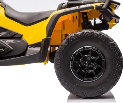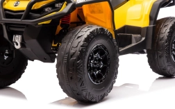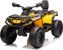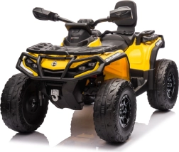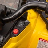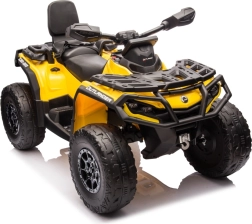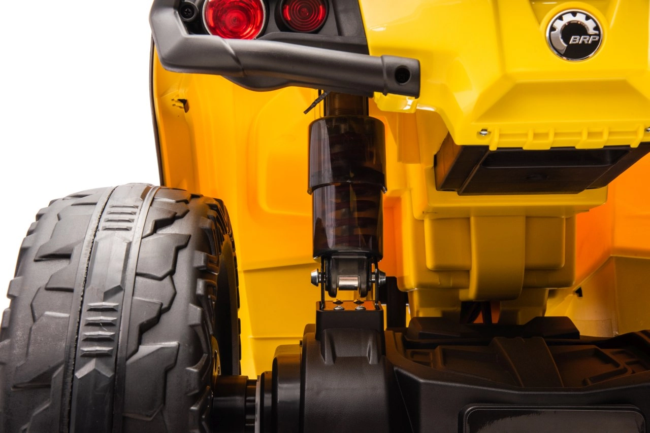 Das Can Am Outlander ATV Quad in leuchtendem Gelb ist so konzipiert, dass es ein echtes ATV realistisch nachahmt. Es ist mit großen EVA-Rädern und einer robusten Kunststoffkonstruktion ausgestattet, die Langlebigkeit beim Spielen im Freien gewährleistet. Zudem verfügt es über Räder mit variablem Antrieb auf 2 oder 4 Räder, die sich einfach per Knopfdruck umschalten lassen.