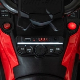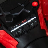 Die Kinder können ihre Lieblingsmusik dank des Audiopanels mit MP3, FM-Radio, Bluetooth und weiteren Funktionen genießen. Die Sicherheit gewährleistet ein belüfteter Sitz aus ökologischem Leder mit Sicherheitsgurten. Es ist so konstruiert, dass es eine Belastung bis zu 50 kg verkraftet.