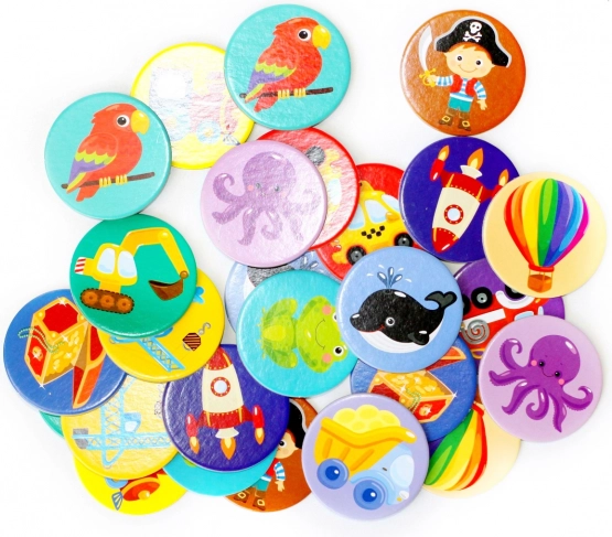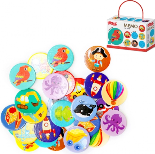 Das Spielset enthält 28 runde Kärtchen, die speziell für Jungen gestaltet sind. Das Memo-Spiel ist nicht nur unterhaltsam, sondern auch lehrreich, da es hilft, das Gedächtnis und die Aufmerksamkeit Ihrer Kinder zu fördern.