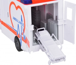 Der Krankenwagen hat öffnende Seiten- und Hecktüren, und das abnehmbare Dachelement ermöglicht einen leichten Zugang zur detaillierten Innenausstattung wie Lenkrad, Armaturenbrett und Sitzen. Im Set finden Sie außerdem herausnehmbare Trage, die das Spiel noch vielfältiger machen.