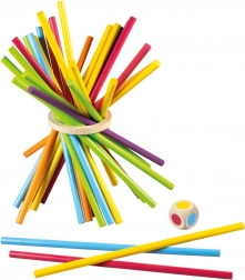 Ihr würfelt mit einem Würfel mit farbigen Punkten und zieht das Stäbchen der entsprechenden Farbe. Schnell zu verstehen, flüssiger Spielablauf und keine langwierige Vorbereitung.