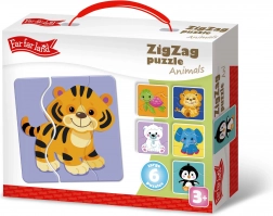 Puzzle ZigZag von Far Far Land bietet Spaß und Bildungswert dank des gezackten Schnitts und bunter Tiermotive. Die Verpackung enthält 6 Bilder.