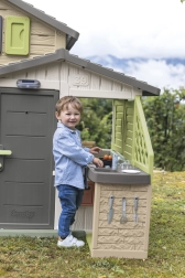 Diese Sommerküche ist die perfekte Ergänzung zu den Spielhäusern Neo Jura Lodge, Pretty, Nature, My Neo House, Neo Friends House, Chef, Boss House, My New House, Green Jura Lodge und Green Evo Friends House. Die Küche besteht aus einem Grill und einem Waschbecken mit Wasserhahn.
