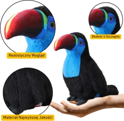 Dieser Tukan vereint Weichheit und Qualität mit einem ansprechenden Design. Schwarzes Gefieder mit blauen Akzenten und ein mehrfarbiger Schnabel verleihen dem Spielzeug ein naturgetreues Aussehen, das Kinder sofort lieben werden. Feine Nähte und eine sorgfältige Verarbeitung sorgen für eine lange Lebensdauer, auch bei täglichem Spielen.