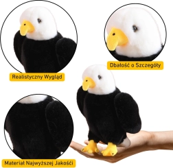 Der Plüschadler bringt Kindern viel Freude – er ist weich, flauschig und angenehm zu berühren. Die realistische Gestaltung mit weißem Kopf, schwarzem Körper und gelbem Schnabel regt die Fantasie an und weckt das Interesse an der Natur. Die kompakte Größe von 25 cm ist ideal für kleine Kinderhände und für unterwegs.