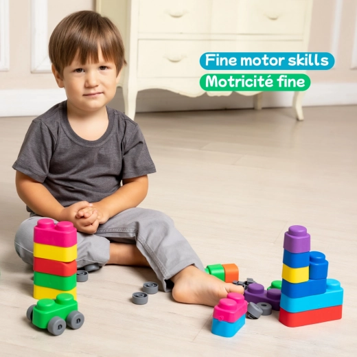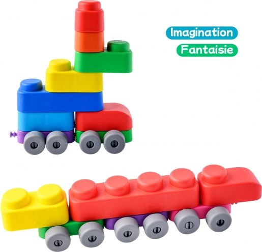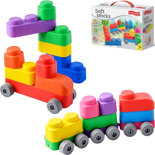 Bausatz Far Far Land ist ein unterhaltsames und kreatives Spielzeug für Kinder! Enthält 21 weiche Blöcke und 16 Räder, die die motorische Entwicklung und Fantasie Ihrer Kinder fördern.
