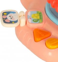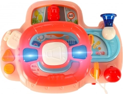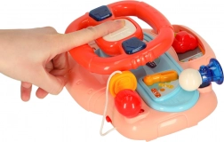 Das interaktive Kinderlenkrad ist ein tolles Spielzeug für kreatives Spielen zu Hause und unterwegs. Das Kind kann das Lenkrad drehen und ein kleines Auto auf dem Armaturenbrett „fahren“, begleitet von Motorstart, Hupe, Blinkern mit Licht und fröhlichen Melodien. Dank der Lautstärkeregelung lässt sich das Spiel leicht an die Umgebung anpassen.