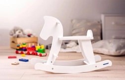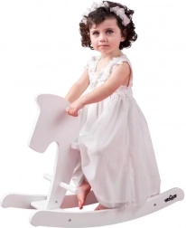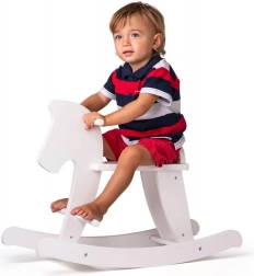 Weißes Holz-Schaukelpferd für die Kleinsten bietet sicheren Spielspaß und fördert die Motorik. Dank der stabilen Holzkonstruktion, glatten, abgerundeten Kanten und einer Sitzhöhe von ca. 28 cm ist es ideal für Kinder ab 1 Jahr. Selbstverständlich mit CE-Zertifizierung.