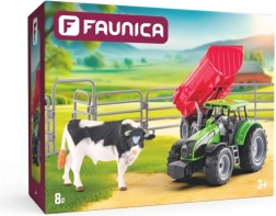 Traktor, Kippanhänger, Stierfigur, Zaunelemente und Gattertür (Gehege)