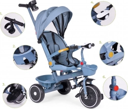 Dieses multifunktionale Dreirad vereint den Komfort eines Kinderwagens mit dem Spaß eines klassischen Dreirads. Der drehbare Sitz ermöglicht das Fahren mit Blickkontakt zu den Eltern für kleinere Kinder; größere Kinder genießen die Fahrt in Fahrtrichtung. Stabile Stahlkonstruktion, verstellbare Rückenlehne und anpassbarer Lenker sorgen in jeder Entwicklungsphase für Ergonomie und Sicherheit.