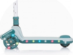 Weitere Vorteile sind gummierte rutschfeste Griffe und ein breites rutschfestes Trittbrett, das während der Fahrt Sicherheit garantiert. Der Roller ist auch mit vorderen und hinteren Rädern mit LED-Lichtern ausgestattet, was die Fahrt attraktiver macht.