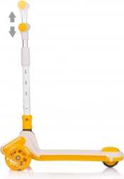 Der Rapido Roller ist ideal für junge Fahrer dank seiner gelben Farbe und stabilen Konstruktion mit drei Rädern und bunten LED-Lichtern an den Rädern.