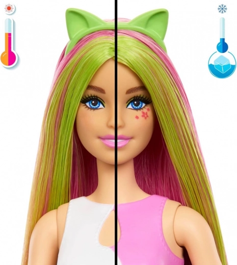 Dank des speziellen Farbwechseleffekts im Gesicht der Puppe (kaltes/warmes Wasser) kann der Look immer wieder magisch verändert werden. Lange pink-grüne Haare, ein Katzenhaarreif und auffällige Schuhe sorgen für einen unverwechselbaren Stil bei jedem Modeabenteuer.