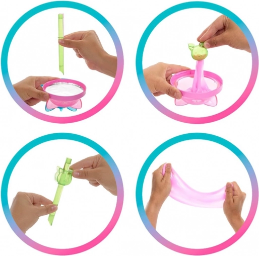 Die Verpackung in Milkshake-Form verbirgt bis zu 8 Überraschungen, darunter glitzernden, dehnbaren Slime für sensorischen Spaß und zum Aufbewahren der Accessoires.