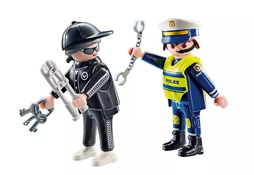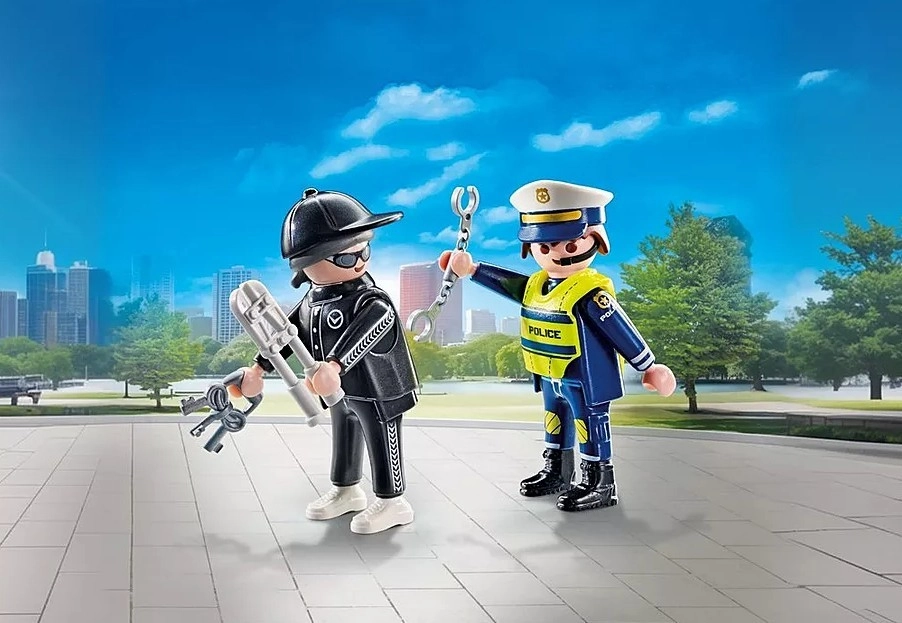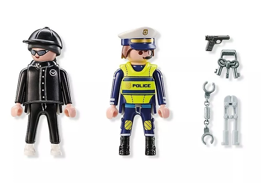 Freuen Sie sich auf aufregende Action mit dem Playmobil Duopack Polizist und Dieb. In diesem spannenden Set ist der Polizist mit einer Pistole und Handschellen ausgestattet, um den Einbrecher auf frischer Tat zu ertappen.