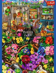 Das Set enthält zwei separate Puzzles mit je 500 Teilen, die eine fröhliche, farbenreiche Gartenszene voller Blumen und Gartenaccessoires zeigen. Dank hochwertiger Druckqualität kommen Farben und feine Details hervorragend zur Geltung – so macht das Puzzeln richtig Freude.
