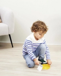 Der Abzieher erleichtert das Waschen von Fenstern oder anderen Glasflächen, und die Reinigungsmittel-Attrappe sorgt für Spaß beim Einbinden von Kindern in die Hausarbeiten.