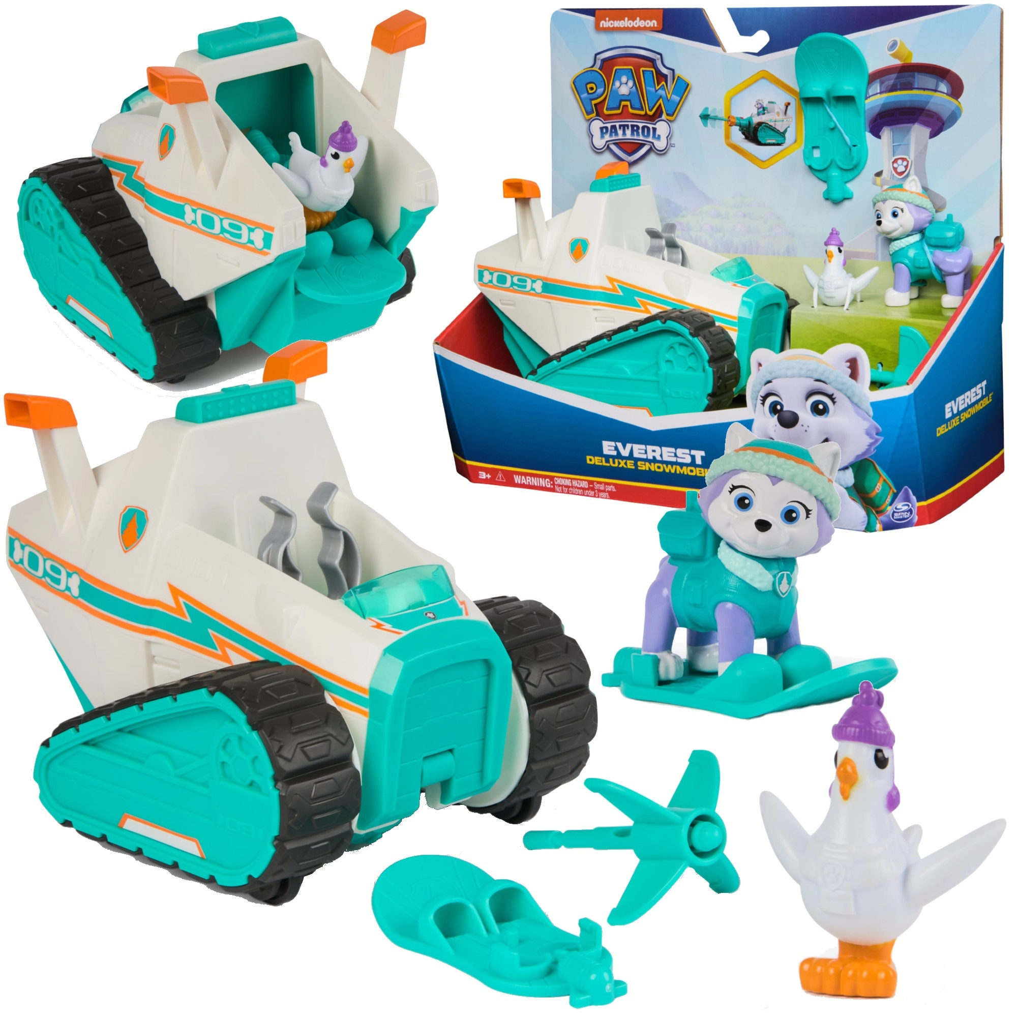 Das Set umfasst eine detailreich gestaltete Everest-Figur in Winterausrüstung, das Küken Chickaletta sowie thematische Accessoires für Schnee-Abenteuer. Kinder können auf Rettungsmission gehen, mit den Ketten „fahren“, die Abschussvorrichtung auslösen und Freunde retten – genau wie in der Serie.