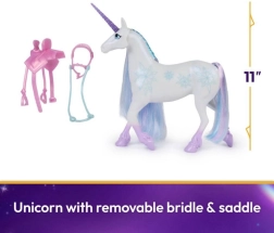 Dieses wunderschöne Einhorn hat ein majestätisch glänzendes Horn, eine bunte Mähne und einen Schweif und ist mit einem abnehmbaren Zaumzeug und Sattel ausgestattet, was stundenlangen Spaß ermöglicht. Bewegen Sie den Kopf von Schneeflocke leicht, um ihre Persönlichkeit darzustellen und erleben Sie das magische Erlebnis der Beziehung zwischen Einhorn und Reiter erneut.