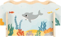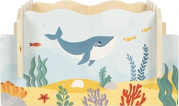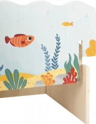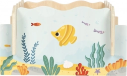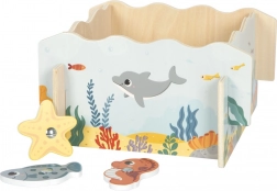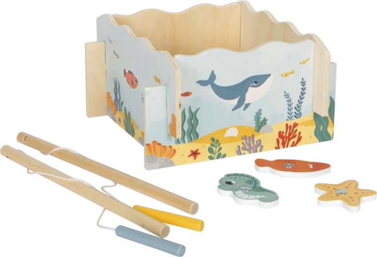 2 magnetische Holzangeln, 10 Meeresbewohner, 4 einschiebbare Seitenwände (Spielfeld)