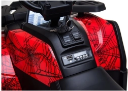 Das stylische Kinder-Quad XMX607 mit Batterieantrieb im roten Spider-Design bringt viel Spaß an der frischen Luft und fördert die Entwicklung der Motorik. Die robuste Konstruktion, große Gummireifen und die realistische Lenkung mit Lenker sorgen für eine sichere und attraktive Fahrt für Kinder ab 3 Jahren. Das von Rennmaschinen inspirierte sportliche Design, LED-Beleuchtung und ein Multimedia-Panel mit USB begeistern kleine Fahrer und Eltern gleichermaßen.