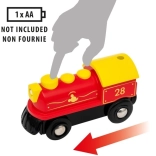 Der Micky-Maus-Zug aus der BRIO-Disney-Kollektion bringt Kindern Fahrspaß und hochwertige Verarbeitung. Die rote Retro-Lokomotive mit Waggon wird von einer Batterie angetrieben und fährt nach Druck auf die Oberseite des Schornsteins mühelos über die BRIO-Holzschienen.