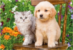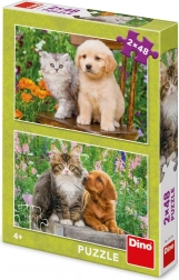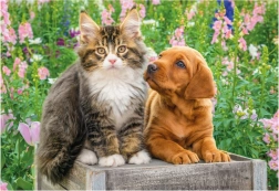 Genießen Sie gemeinsame Momente mit zwei wunderschönen Motiven von Hunden und Katzen im Garten. Jedes Bild besteht aus 48 stabilen Teilen, die passgenau ineinandergreifen und Kindern das Zusammensetzen erleichtern. Die Puzzles sind eine tolle Wahl für das erste eigenständige Puzzeln ebenso wie für gemeinsamen Familienspaß.