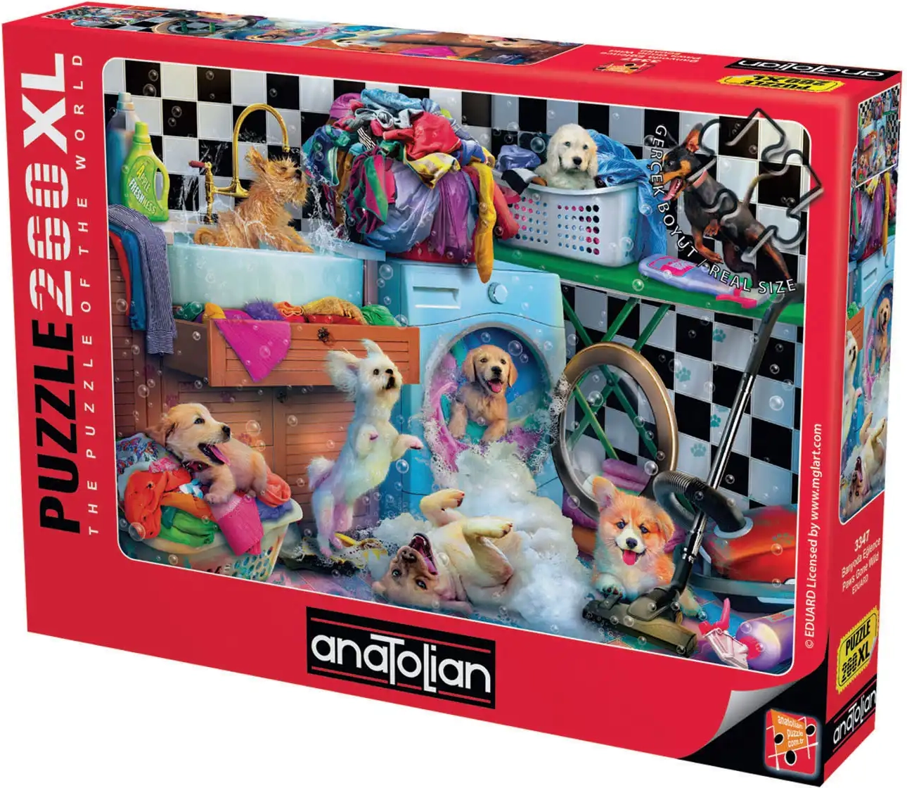 Tauchen Sie ein in die Welt der Spiele und Unterhaltung mit diesem faszinierenden Puzzle, das niedliche Welpen darstellt. Das zusammengefügte Puzzle mit Maßen von 48 x 33 cm bietet stundenlange Freude und Entspannung.