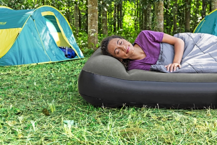 Genießen Sie erholsamen Schlaf überall. Diese Doppel-Luftmatratze mit den Maßen 203 × 152 × 30 cm kombiniert langlebiges PVC-Material mit weichem Velours für maximalen Komfort. Innere I-Beam-Verstärkungen und die mehrschichtige Tritech-Technologie gewährleisten eine stabile Konstruktion, die sich selbst bei langfristiger Nutzung nicht verformt.