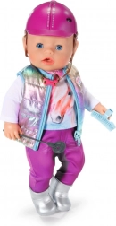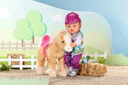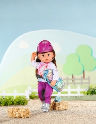 Es enthält zusätzlich Zubehör wie eine Peitsche und eine Bürste für die Pferdepflege. Der Anzug ist auch für ältere Schwestern von BABY born Puppen und andere Puppen mit einer Größe von 43 cm geeignet.