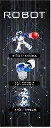 Der Roboter bewegt sich vorwärts, rückwärts und dreht sich zur Seite. Drei Tanzmelodien mit Lichteffekten bringen jede Party in Schwung.