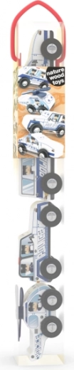 Entdecken Sie die Freude am Spielen mit Polizeiautos aus naturbelassenem Holz. Dieses Spielzeug fördert die kindliche Fantasie und unterstützt Rollenspiele sowie das Erzählen von Geschichten.