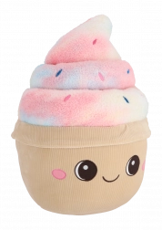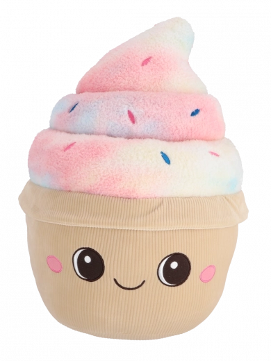 Dieses flauschige Plüschtier in Cupcake-/Soft-Serve-Form überzeugt mit zarten Pastellfarben, fröhlichem Lächeln und hochwertiger Verarbeitung. Mit seiner Größe von 43 cm ist es perfekt zum Kuscheln und zugleich ein stilvolles Dekoelement fürs Kinderzimmer, Schlafzimmer oder Spielzimmer.